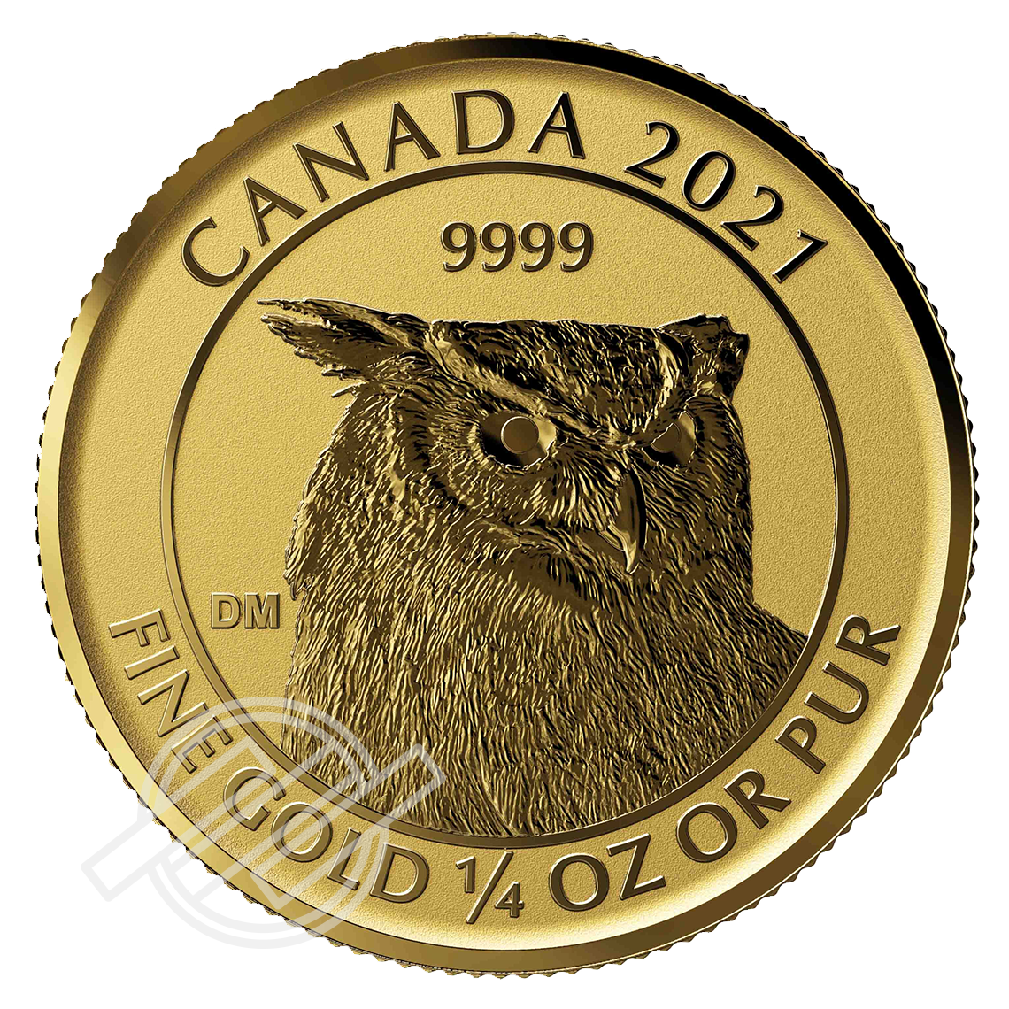 Yet another stunning example of Canadian wildlife design work is available from the Royal Canadian Mint with the release of two reverse-proof coins featuring the Great Horned Owl. These 2021-dated coins are available in fractional-ounce silver and gold coins for sale.